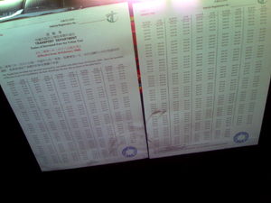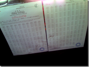 上圖就是該「車費換算表」。你可能會有一個感覺;「你不是說每程加一元嘛?這個換算表為甚為會這麼複雜?」對!連我也不明白!表中的第一行是列明舊價16元,新價17元;第二行舊價17元,新價18元;.... ..... .... ........... ................. ............... ...... .....第二百行舊價215元,新價216元,如此類推,沒完沒了。總之就是任你抽哪一行,每程都加一元。